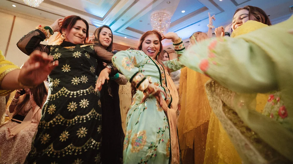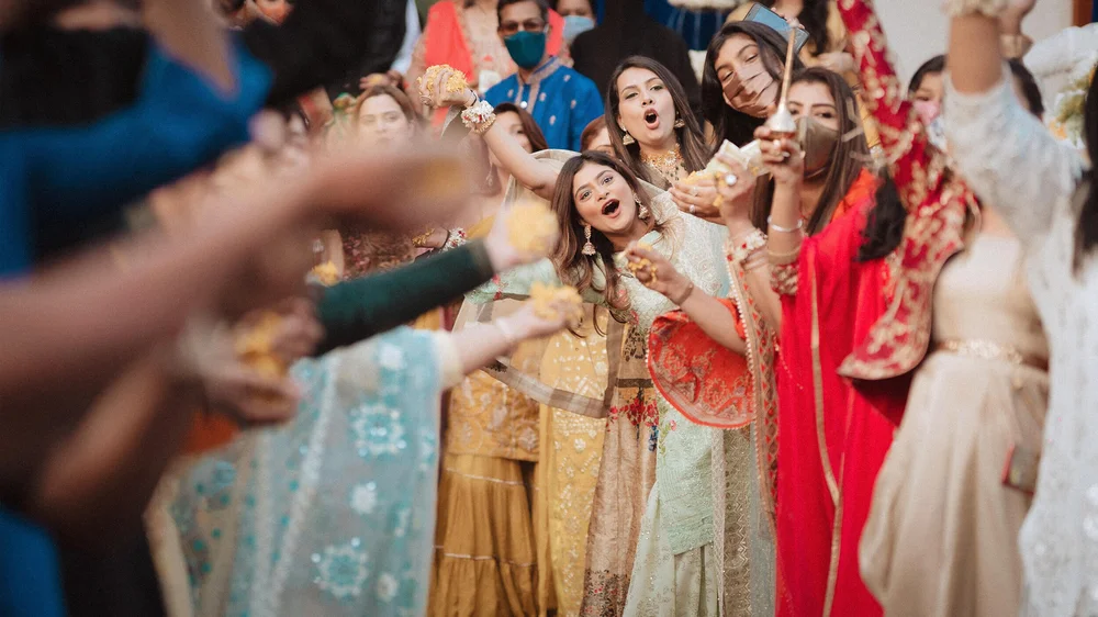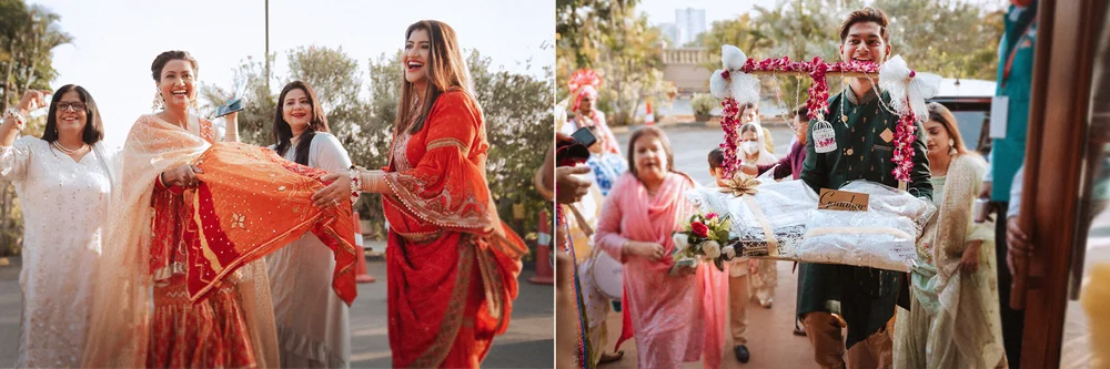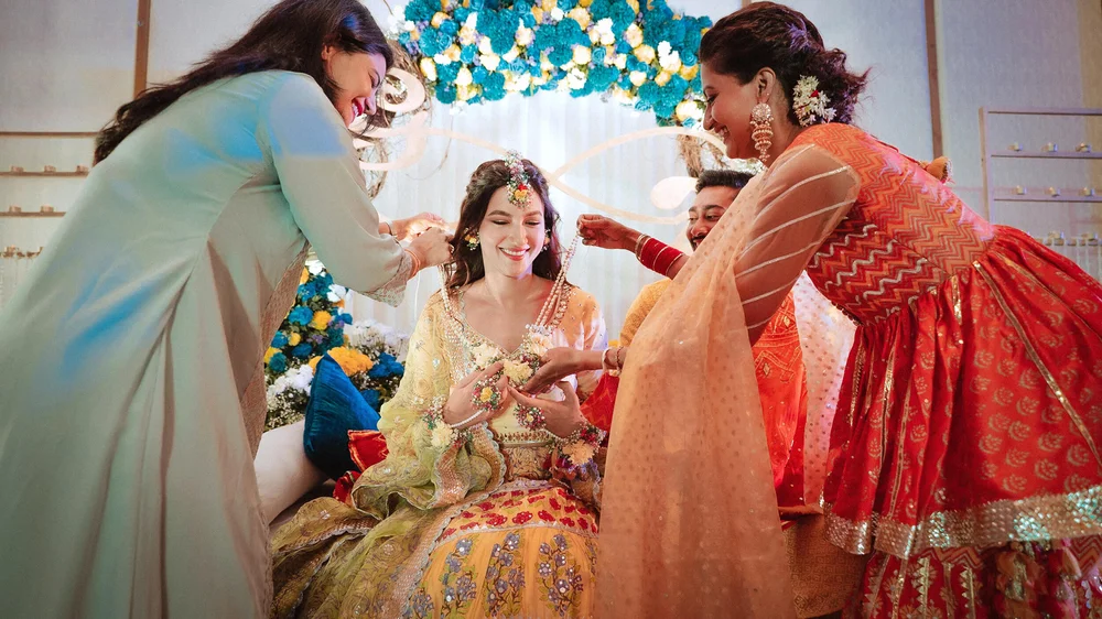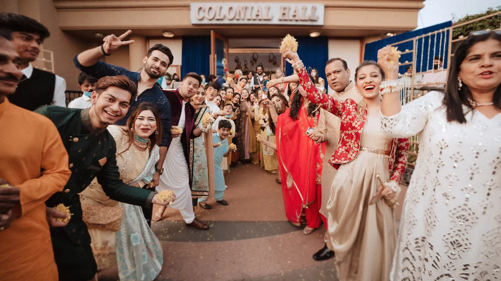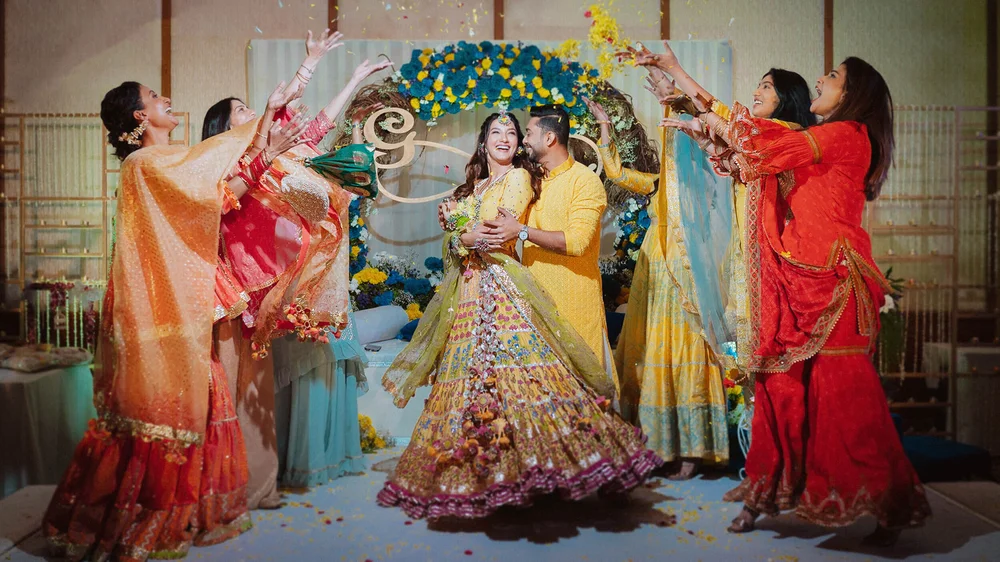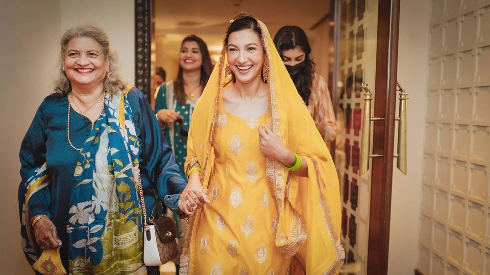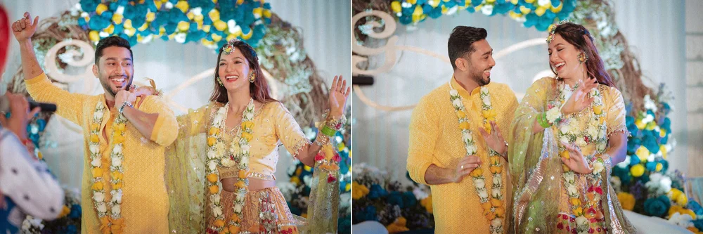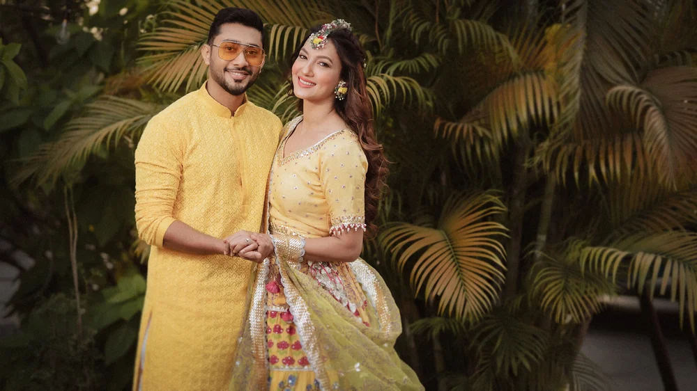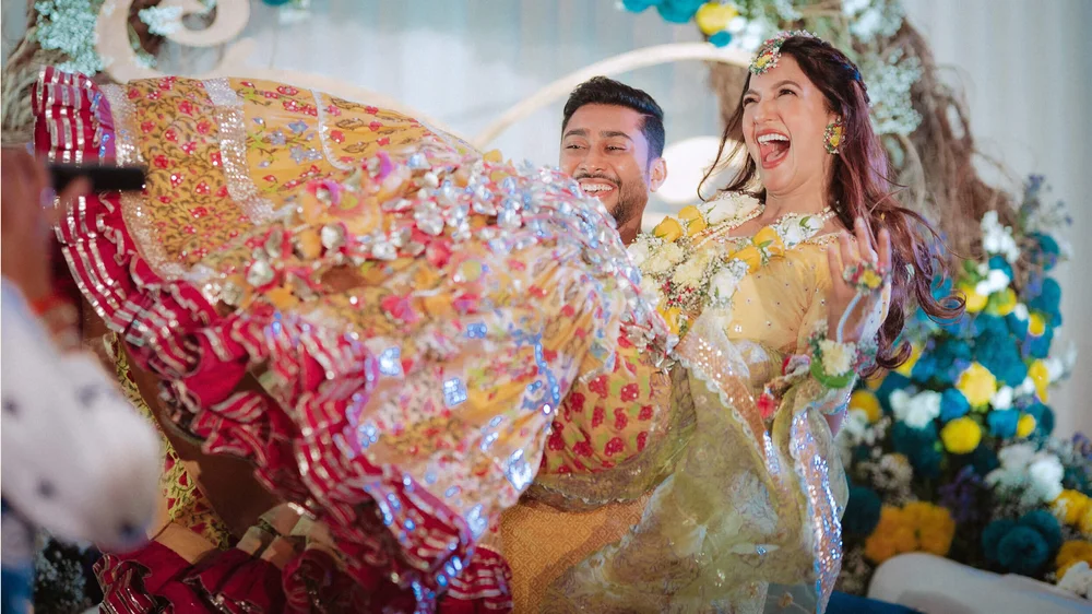 The wedding celebrations started with a Chiksa ceremony amid close family & friends. After adorning her with floral jewellery, Gauahar’s sisters broke into a merry song and dance sequence with the couple. Punjabi dhol players kept the enthusiasm high as Gauahar & Zaid received blessings and gifts from their relatives.